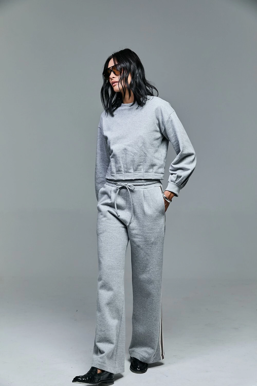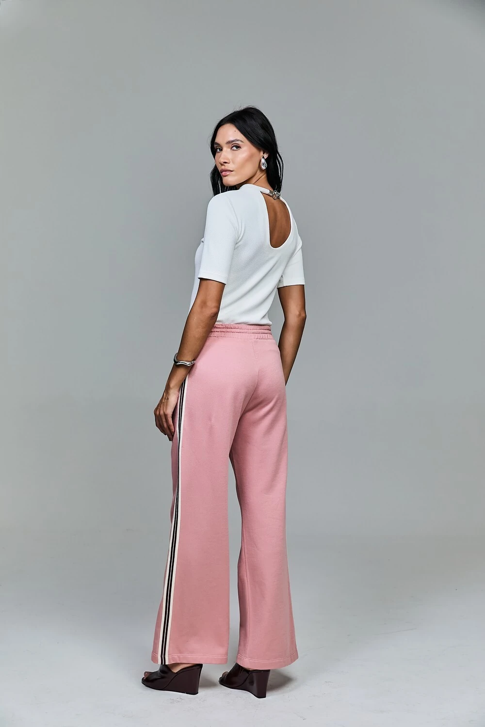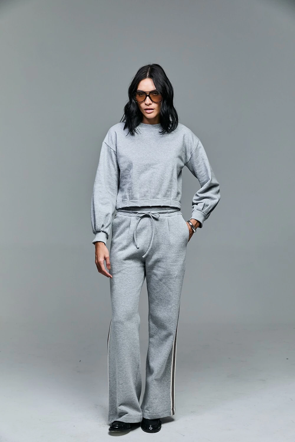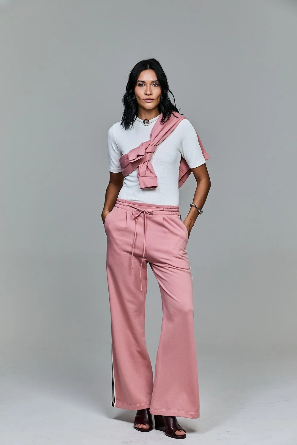 A nossa calça de moletom foi projetada para ser a peça-chave de looks urbanos que prezam pelo estilo effortless — aquele chique que parece não exigir esforço. Confeccionada em malha premium, ela oferece o toque macio e a respirabilidade do algodão. O modelo une a praticidade do cós com elástico, que garante ajuste perfeito e conforto absoluto ao longo do dia, a um corte que valoriza a silhueta sem restringir os movimentos. O diferencial estético reside no seu detalhe lateral, um elemento de design que alonga visualmente as pernas e adiciona um toque contemporâneo à peça.