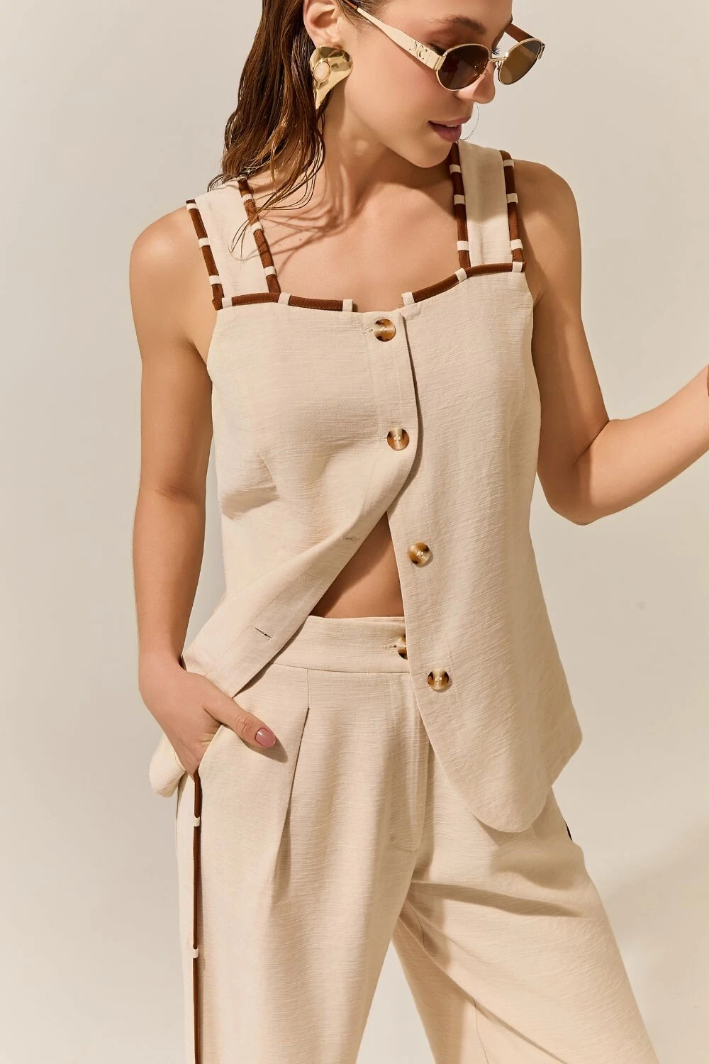 Com um corte moderno e elegante, a Calça Reta com Viés Contrastante é a escolha perfeita para quem busca estilo com sofisticação. Confeccionada em tecido de alta qualidade, ela oferece caimento impecável e conforto ao longo do dia. O destaque fica por conta do viés em cor contrastante nas laterais, que alonga a silhueta e traz um toque de originalidade ao visual.
