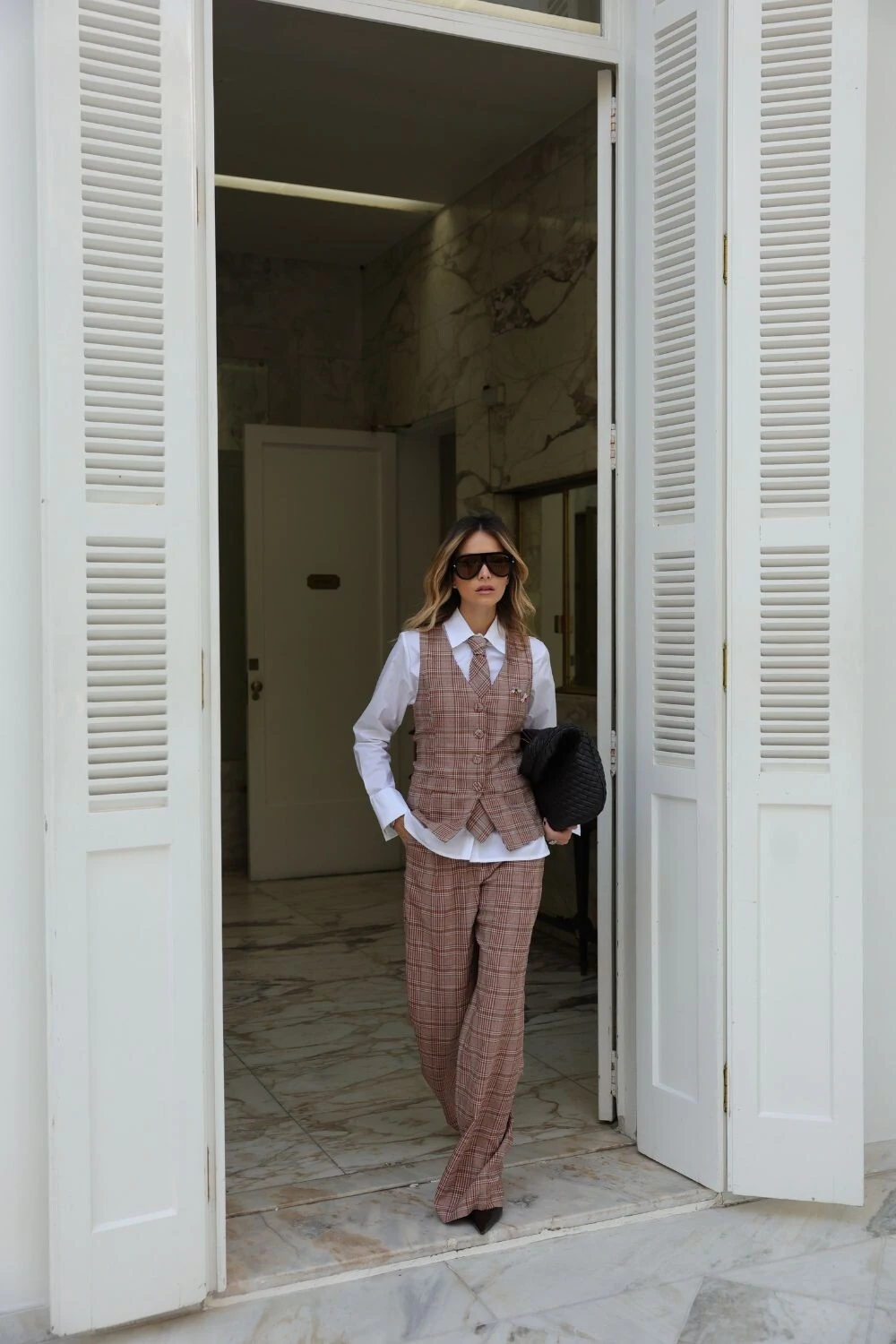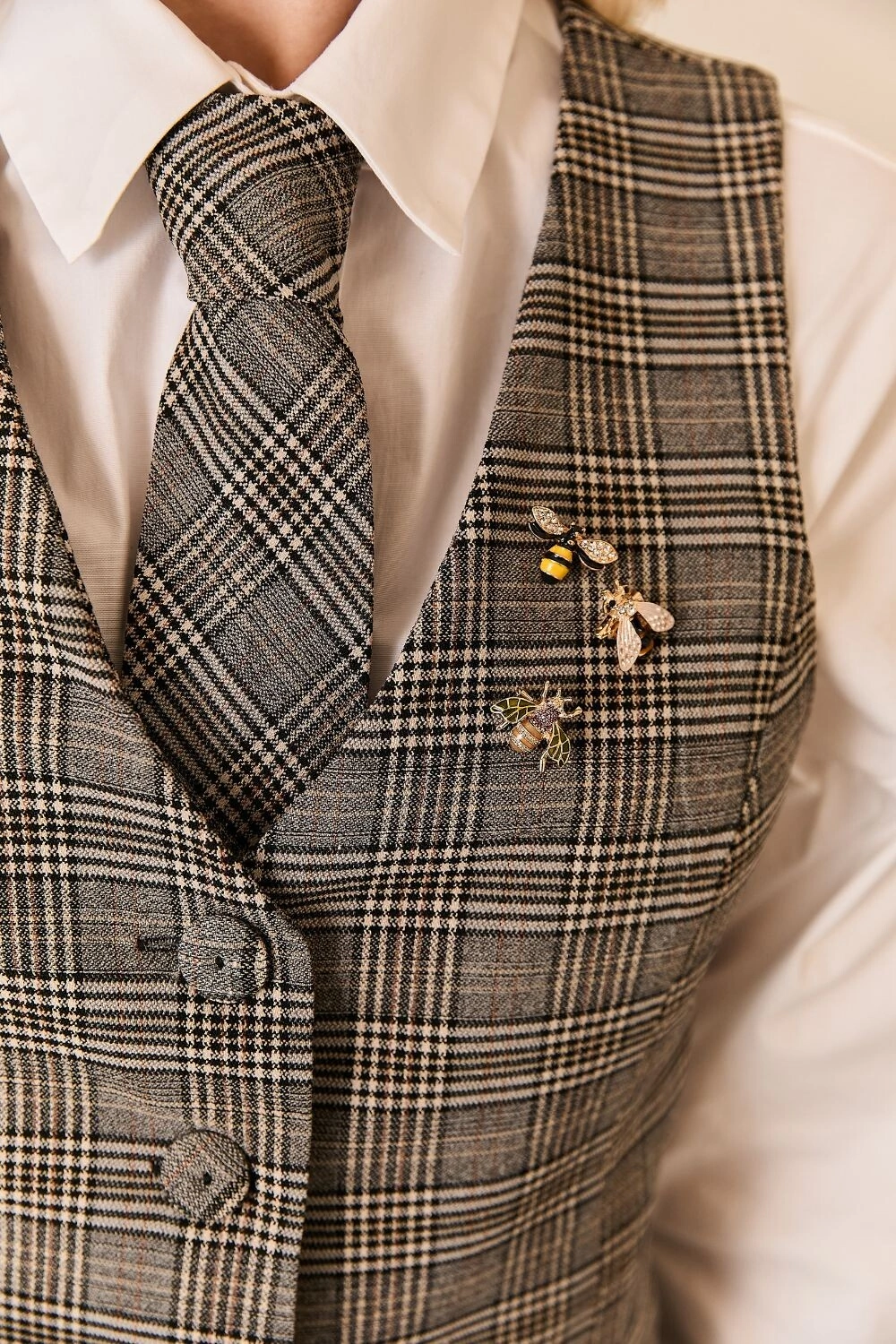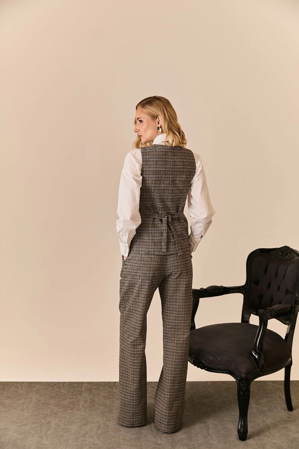 O colete xadrez apresenta uma proposta atual da alfaiataria clássica, com padronagem xadrez que traz um toque sofisticado ao look. Confeccionado em tecido de alfaiataria, conta com modelagem regular e comprimento alongado, garantindo um caimento elegante e estruturado. O decote em V, o fechamento frontal por botões e os bolsos funcionais destacam seu estilo refinado, tornando a peça perfeita para produções versáteis, seja usada como sobreposição ou como protagonista da composição.
