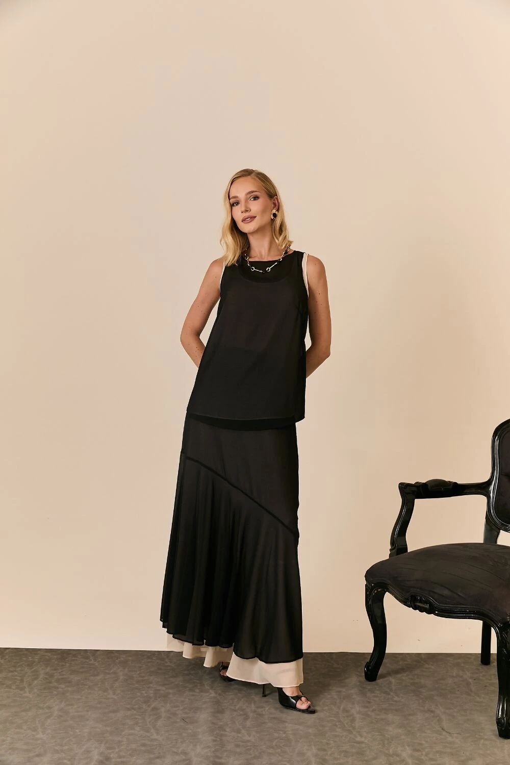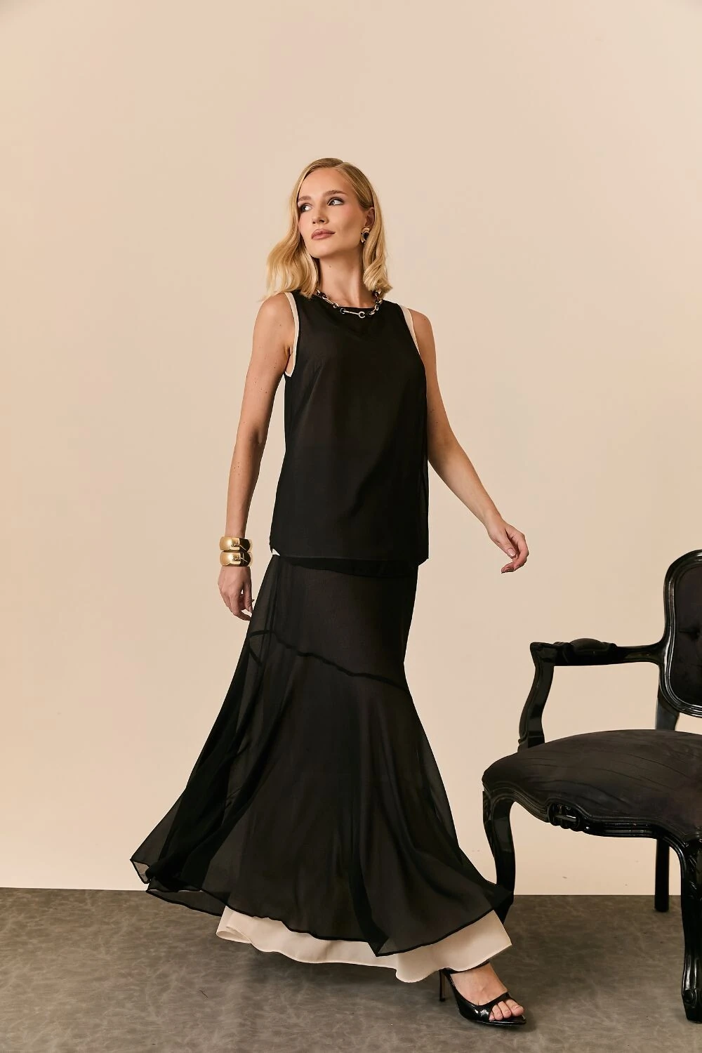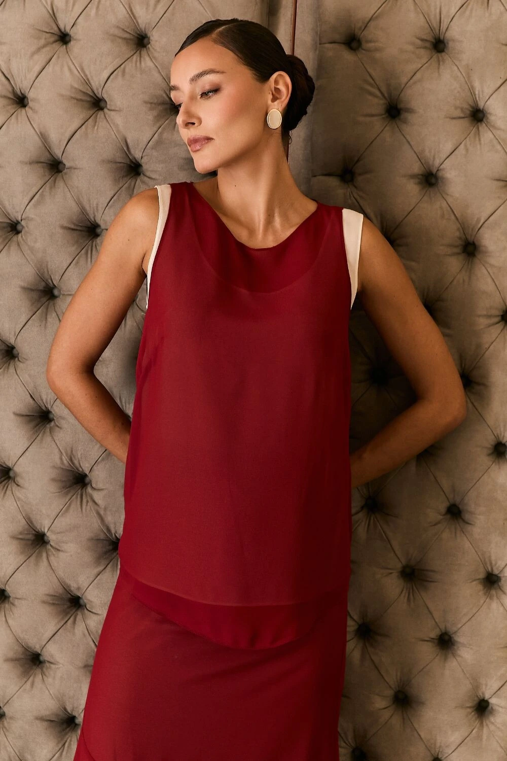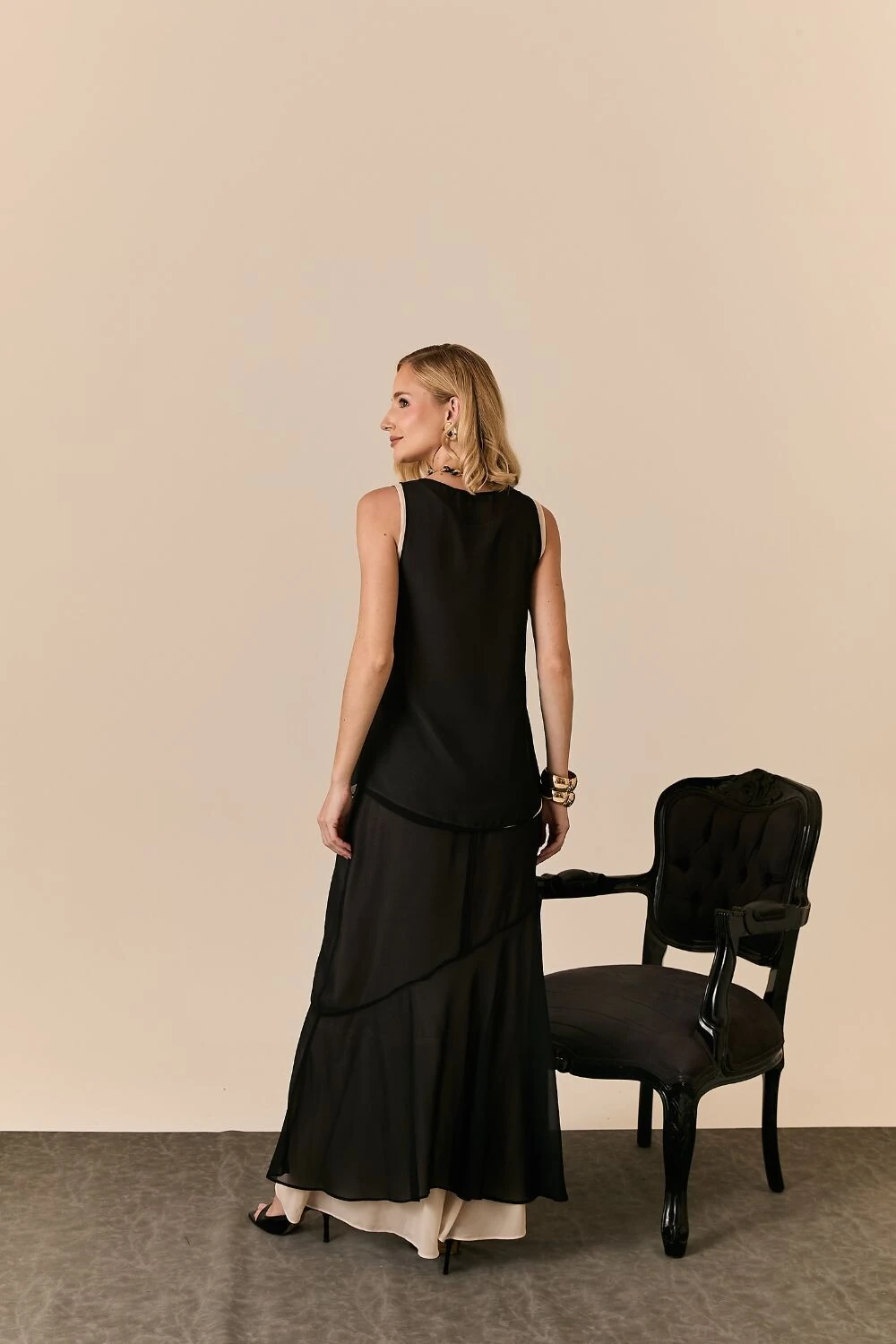 Regata em crepe dupla com design sofisticado e acabamento refinado, perfeita para composições elegantes e versáteis. Confeccionada em tecido leve, proporciona caimento fluido e toque macio. O diferencial da peça está na construção dupla, que traz mais estrutura e um visual alinhado, além de evitar transparências e valorizar o caimento. A modelagem solta acompanha o corpo com leveza, criando um look moderno e sofisticado.