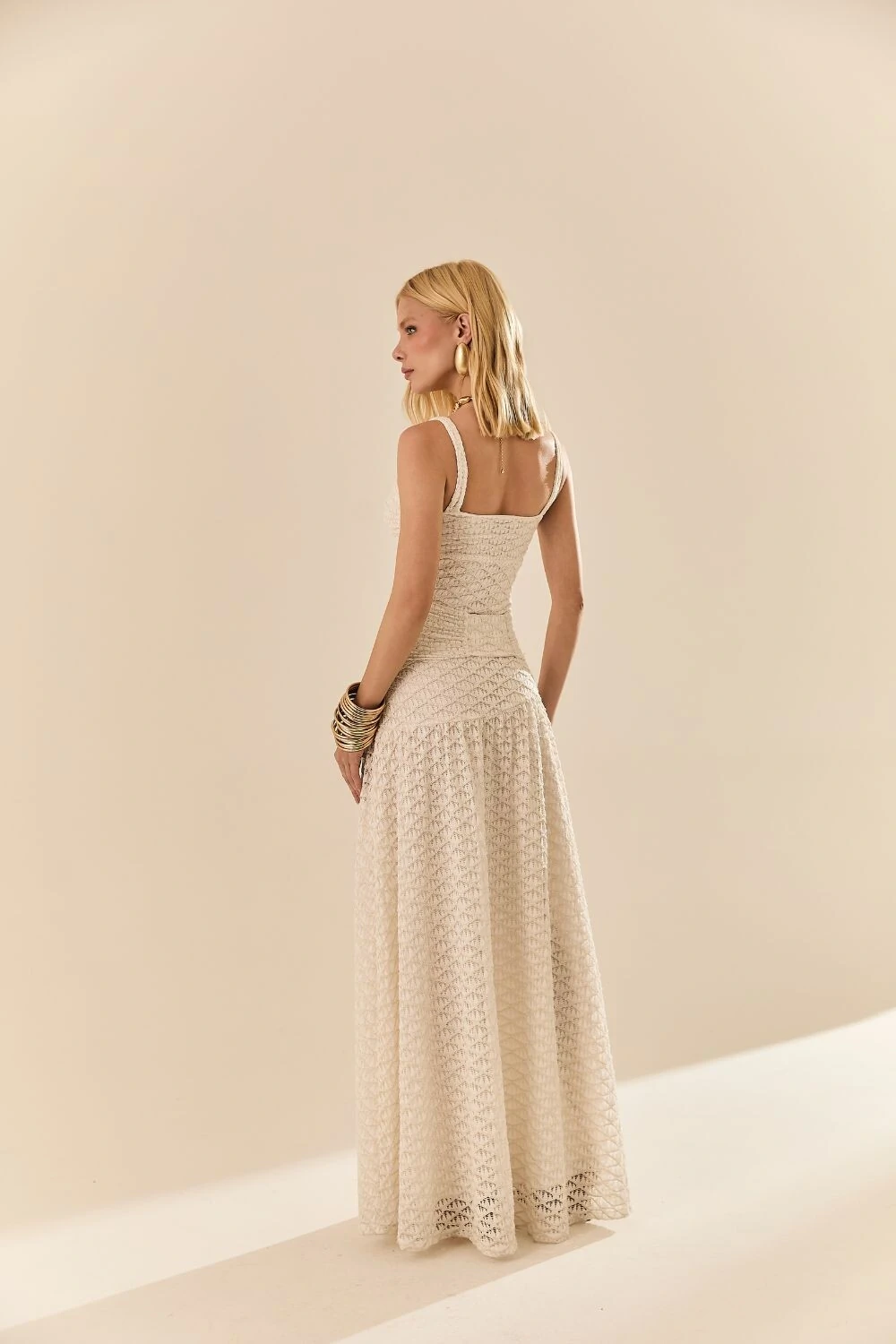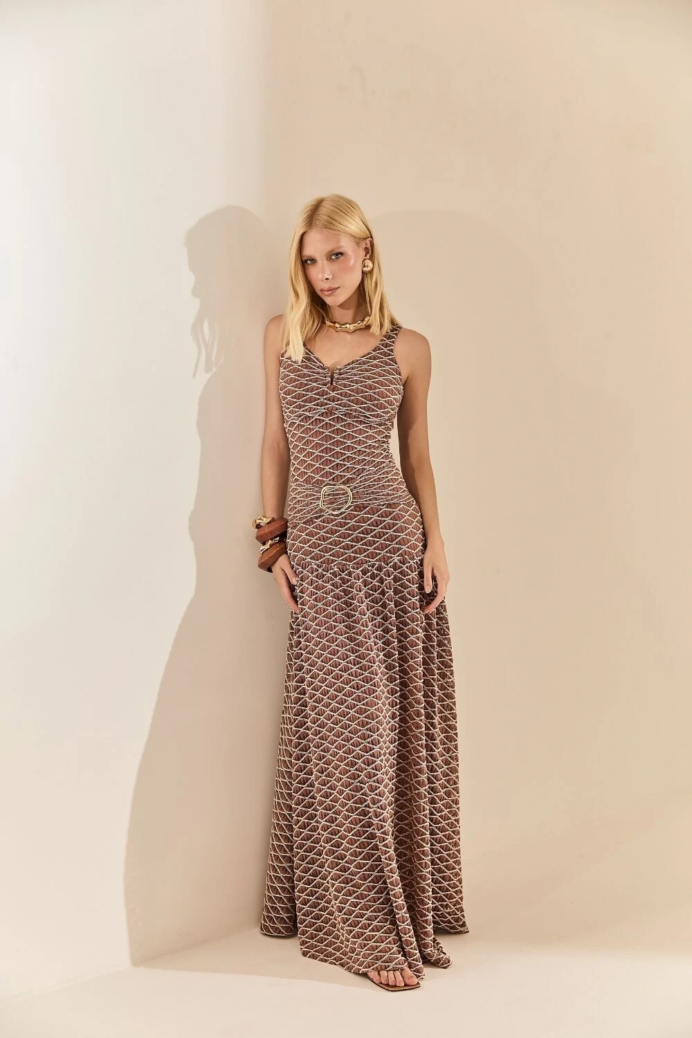 Regata justa com busto duplo drapeado e aviamento metálico em v.